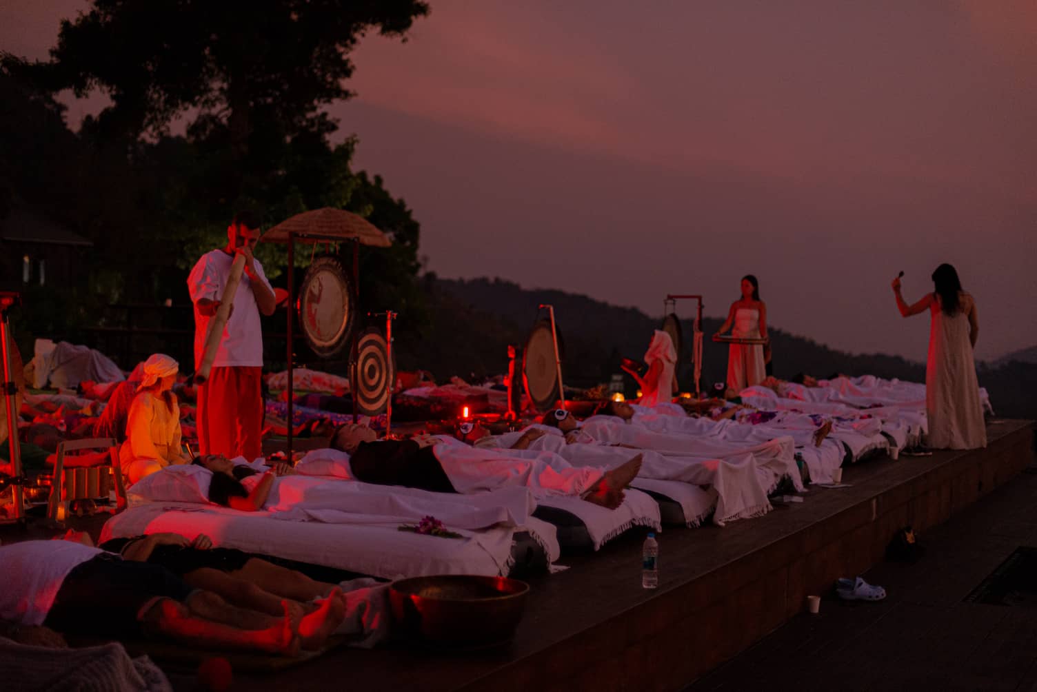 A shared sound journey for friends, teams, or intimate circles. Calm atmosphere, gentle guidance, and a deep collective exhale.